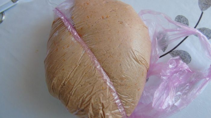 Заворачиваем тесто в пленку и ставим в холодильник на полчаса.