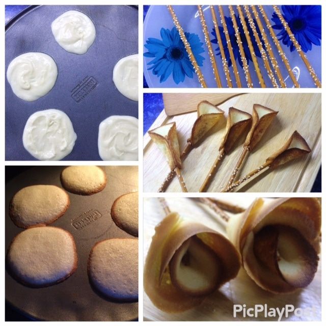 Разогреваем духовку до 180 градусов. Готовим соломку (печенье с кунжутом), на которую будем нанизывать наши лепестки.