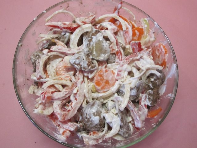 Овощи перемешать.