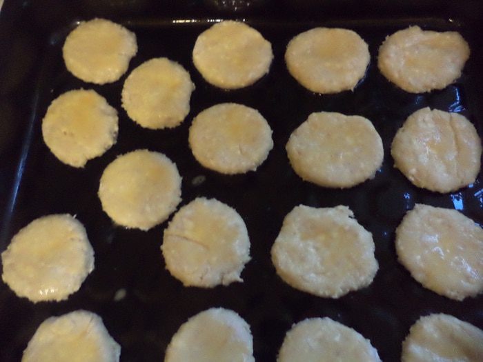 Из теста сформировать 2 колбаски, диаметром около 5 см, завернуть в плёнку и убрать на 2 часа в холодильник.