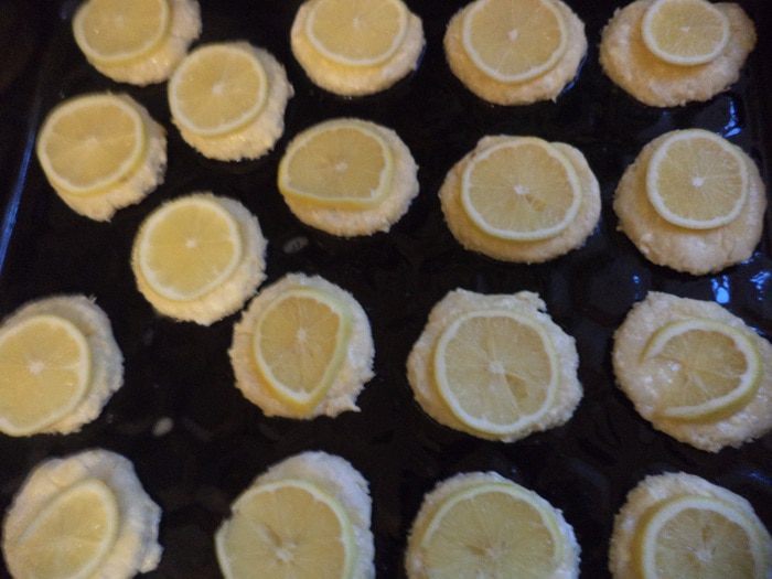 Размягчённое сливочное масло (200 гр ) взбить с яйцами, добавить миндаль, сахар, лимонный сок и муку, перемешать, замесить тесто.