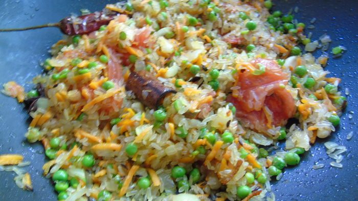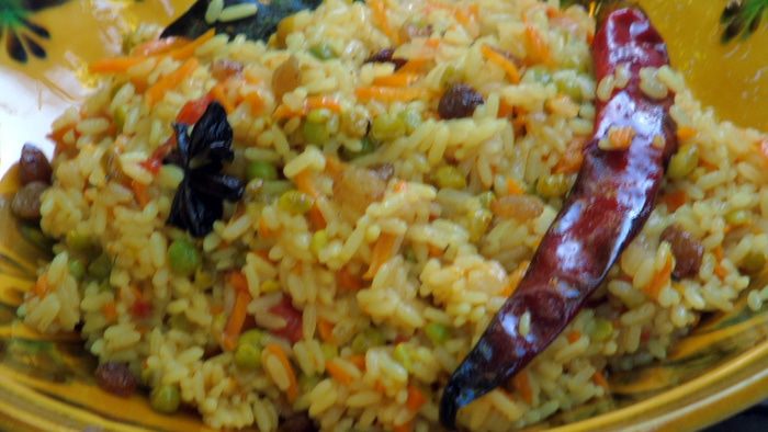 Благодаря невероятному количеству приправ в этом плове, рис становится разноцветным и выглядит очень празднично на столе, а еще он очень ароматный и вкусный. В Индии такой плов называется бирьяни, и его традиционно готовят на новогодний стол.