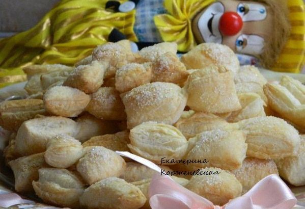 Я в каком-то рецепте упомянала, что мои дети очень любят слоеные бантики. Вроде в них нет ничего особенного, сверхестественного, но когда я спрашиваю что испечь, мой старший сын сразу отвечает: "Бантики". Это хорошая палочка-выручалочка для родителей: быстро, вкусно и много).