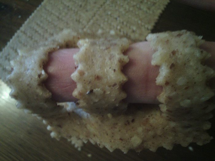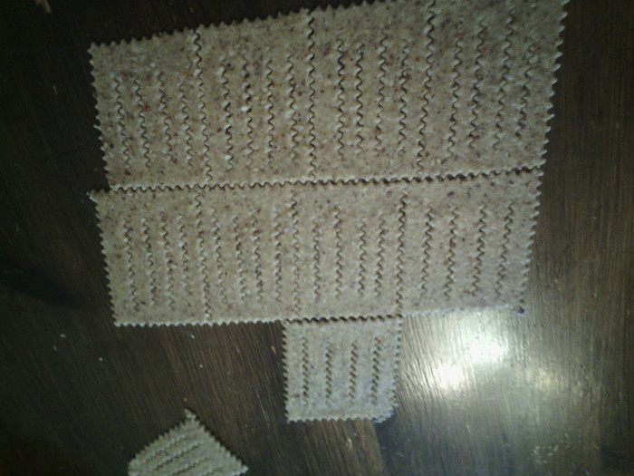 Раскатываем тесто, вырезаем прямоугольники, в каждом прямоугольнике делаем 4 надреза. Не до края. Теперь самое сложное объяснить как делать форму.