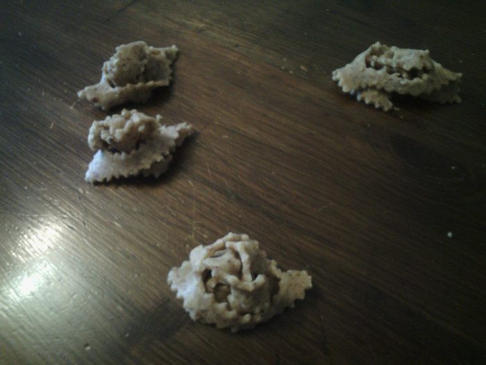 Тесто - готовят с мукой, яйцом, водой из цветов апельсина, шафран, , аниса, корицы, миндаля, кунжута, оливкового масла и пекарсим порошком - нарезют прямоугольниками, в которых практикуется вырез с помощью валика четыре выреза, образуя пять вкладок, которые затем закручиваюься чтобы дать форму цветка, характерную для этих сладостей.