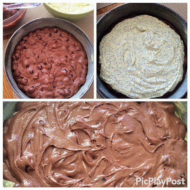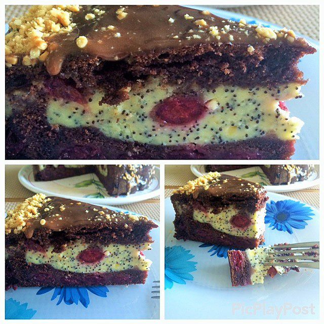 Шоколадно-вишневый пирог с творожно-маковой начинкой
