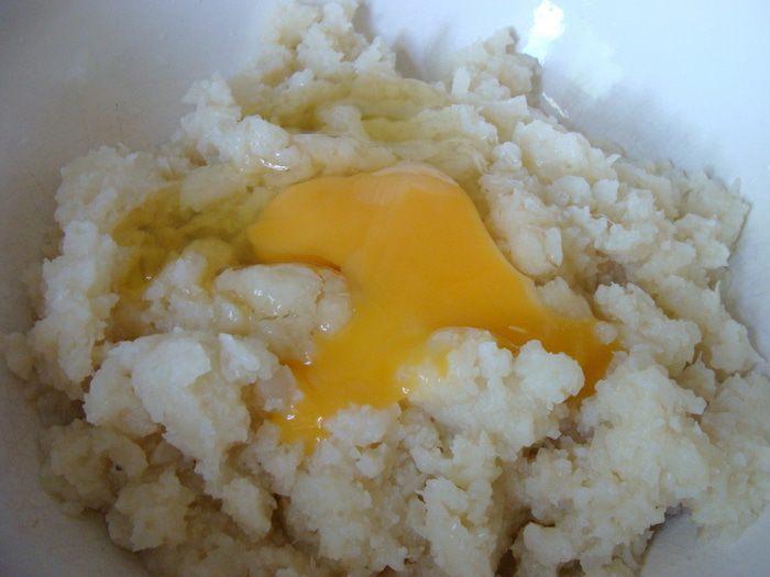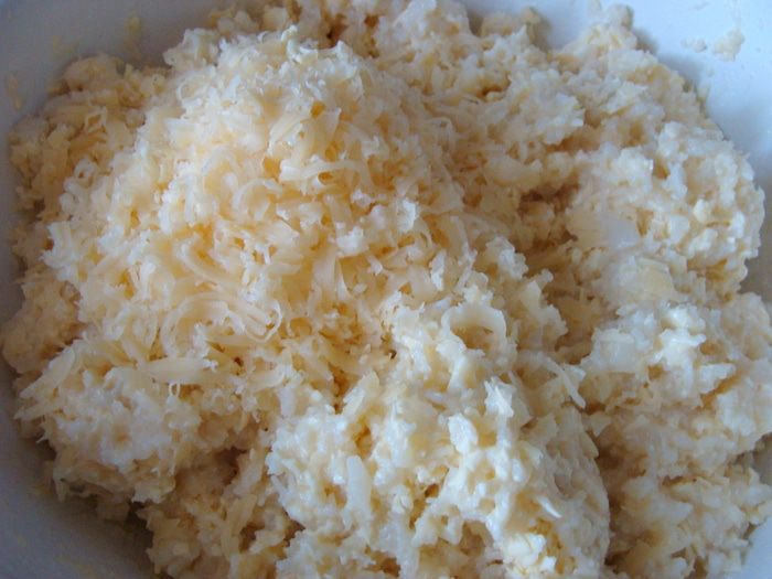 Измельчить в блендере, добавить взбитое яйцо, оливковое масло, натертый сыр и измельченный чеснок.