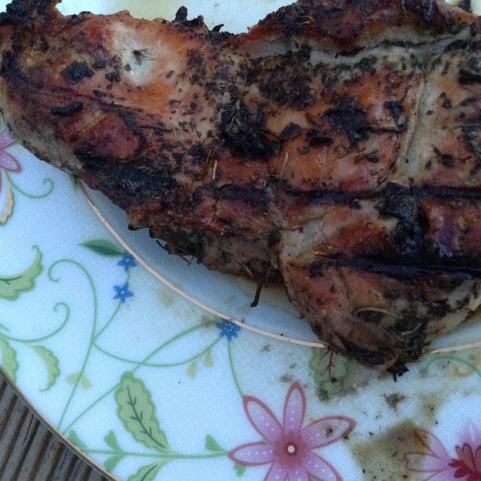 Положить на решетку, обжарить на углях до поджаристой корочки.