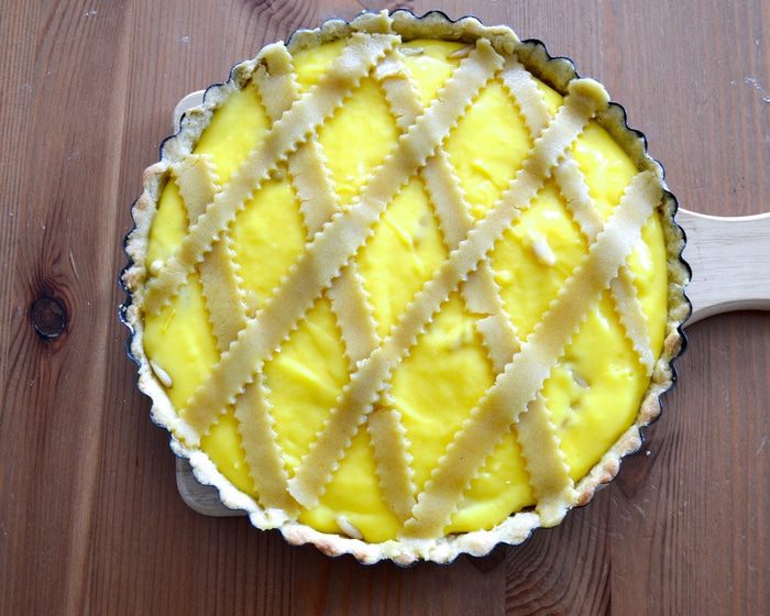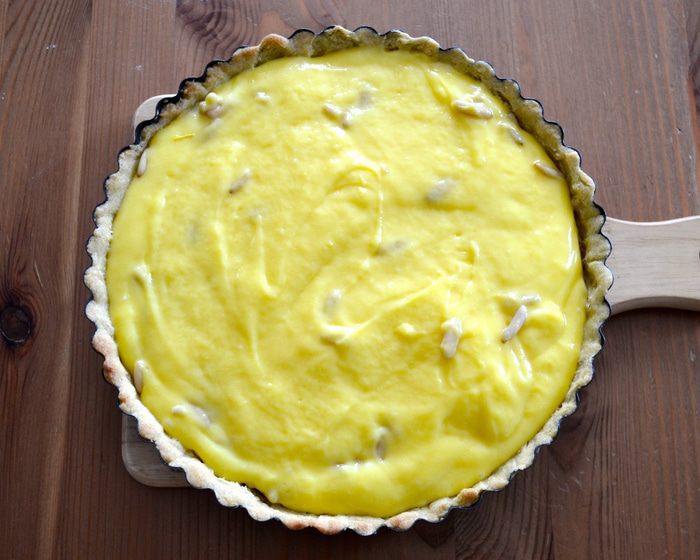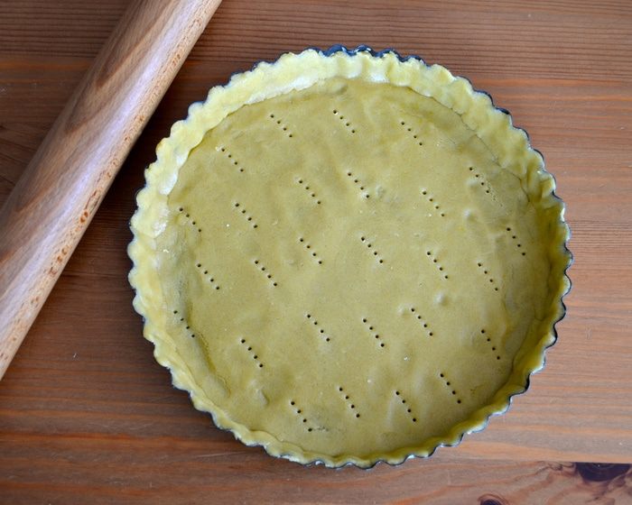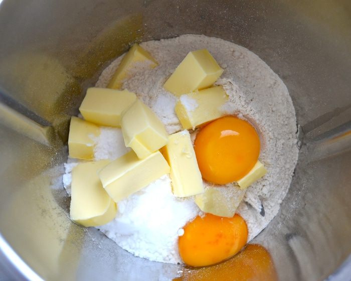 Для приготовления теста используем кухонный комбайн. В чашу миксера положите муку, кусочки охлажденного сливочного масла, яичные желтки, мелко натертую цедру половины лимона, сахарную пудру и щепотку соли. Включите комбайн и в течение нескольких секунд измельчите все до состояния мокрой крошки.