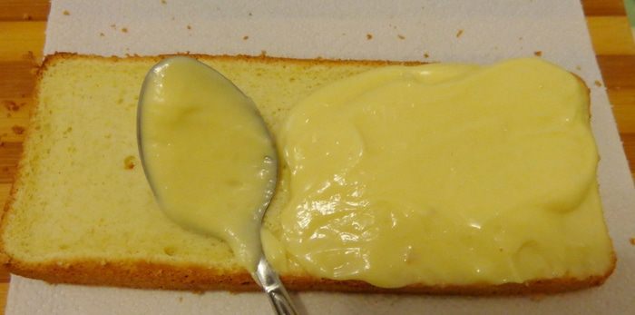 Засомневалась, стоит ли пропитывать коржи сиропом. Они и так очень нежные. Потом решила, что хуже не будет. Промазать коржи кремом "Нежность", остудить в холодильнике.