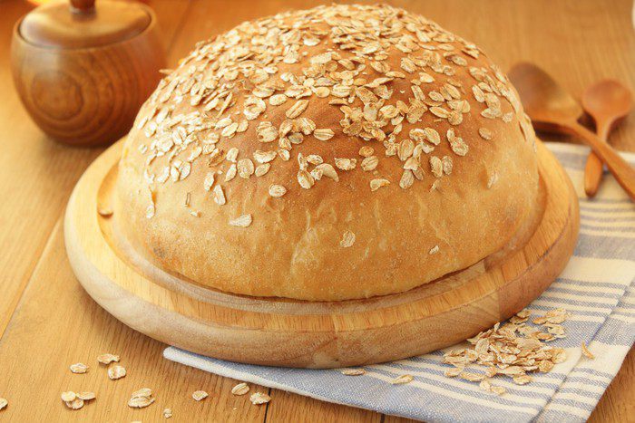Аккуратно смазать смоченной в воде кисточкой хлеб и посыпать овсяными хлопьями.