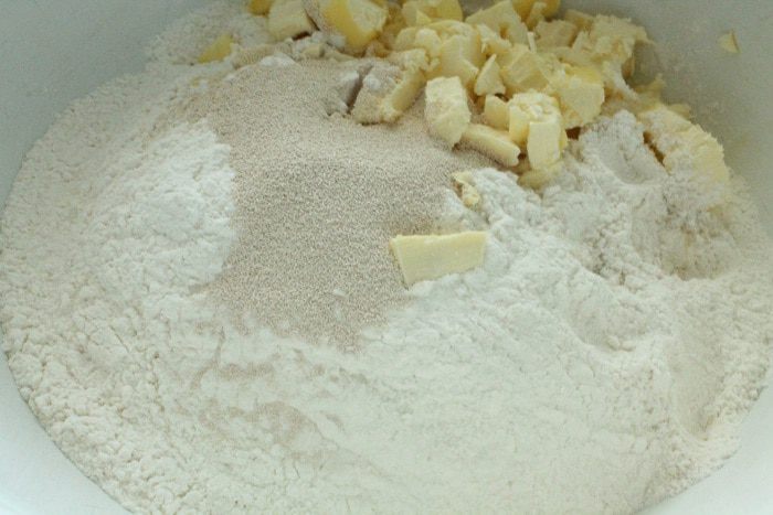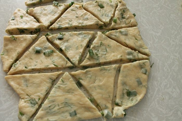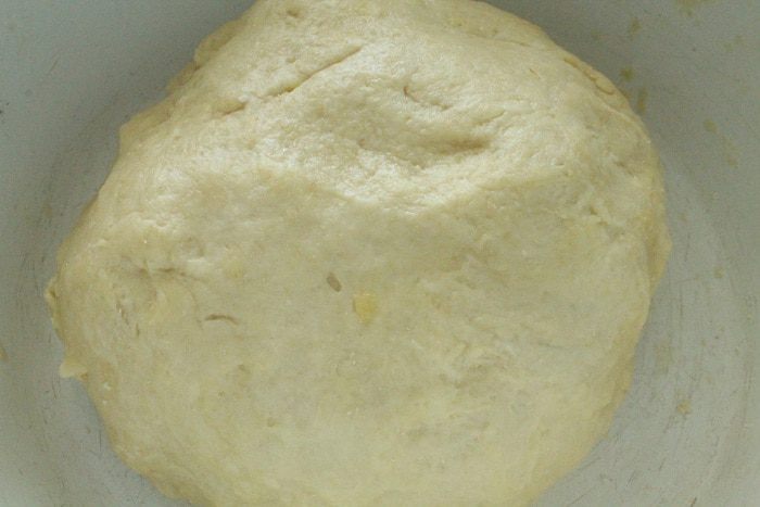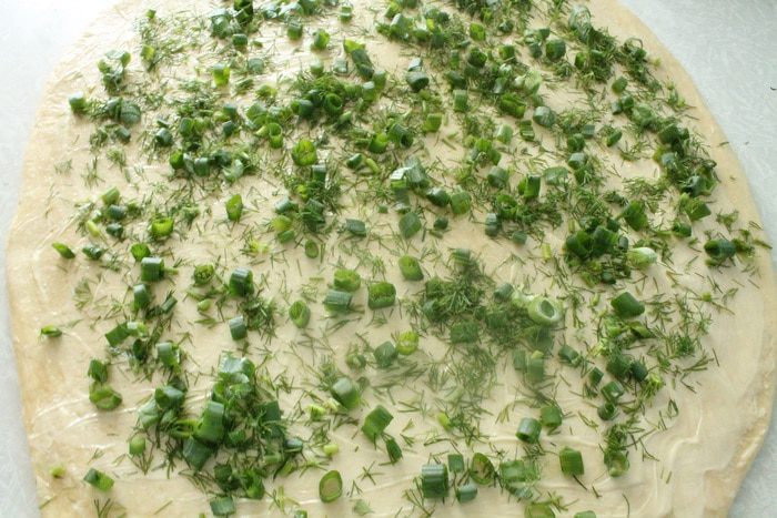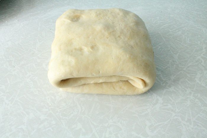 И затем еще раз втрое, вот так. Посуду с тестом накрыть пленкой и поставить в холодильник на 40 минут. Затем достать тесто из холодильника, снова раскатать и снова повторить складывание, в этот раз тесто уже не смазываем маргарином. И снова ставим посуду с тестом в холодильник на 20 минут.