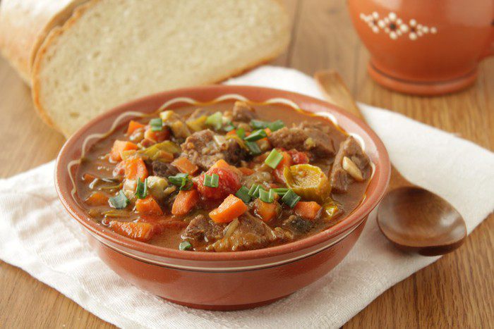 Добавить немного кипяченой воды, посолить, поперчить и тушить говядину около часа, добавить зелени и подавать.