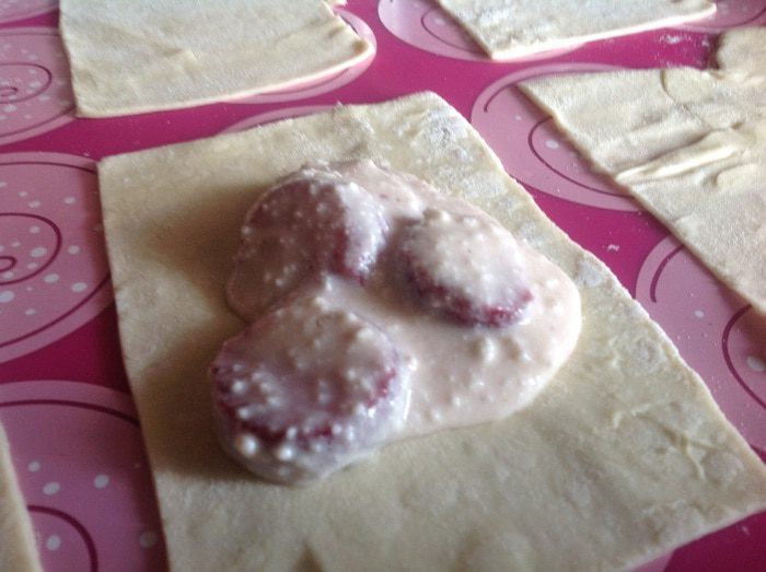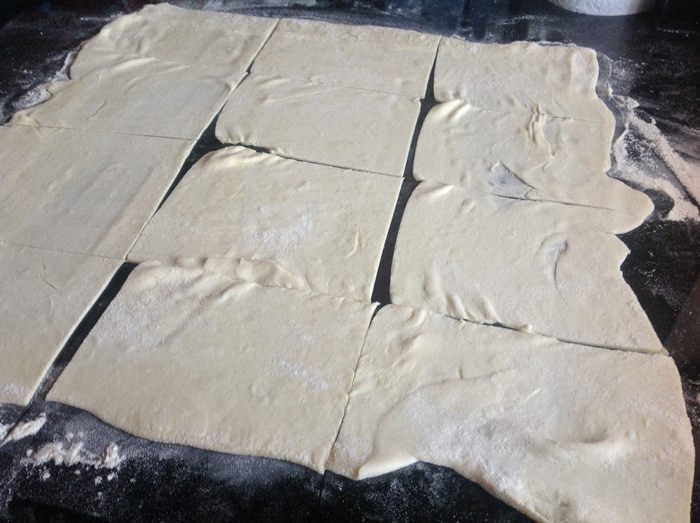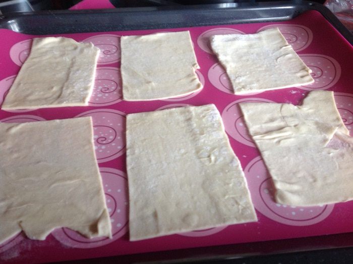 Духовку разогрейте до 180 градусов. Тонко раскатайте тесто и разрежьте на 12 частей.