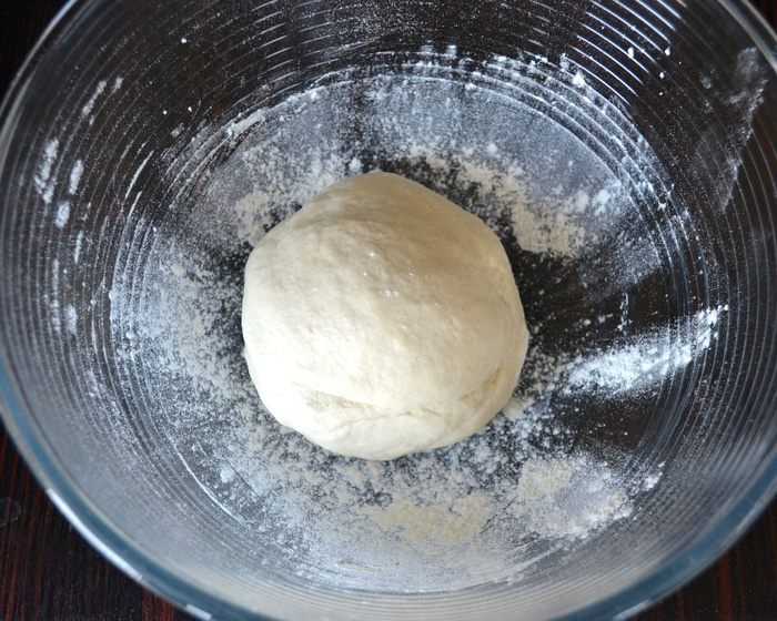 Сформируйте из теста шар, положите его в большую миску, накройте пленкой и поставьте в тихое теплое место на 1 час.