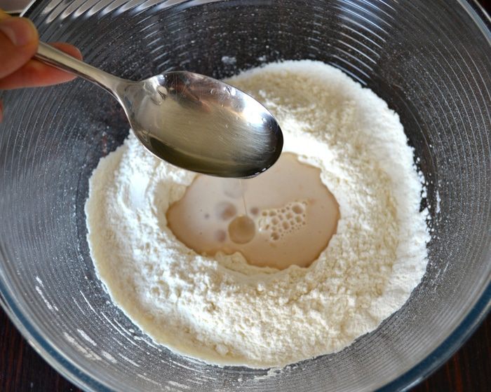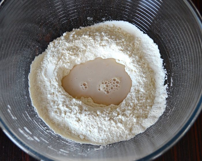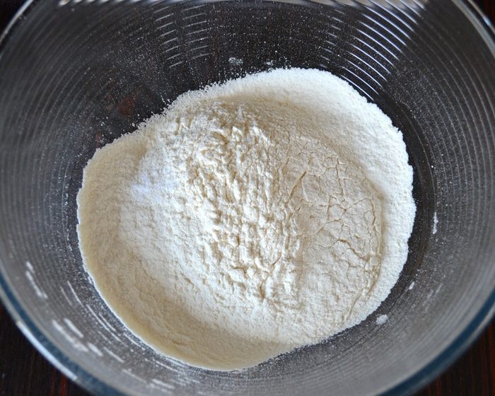 В большую миску просейте муку и добавьте соль. Перемешайте.