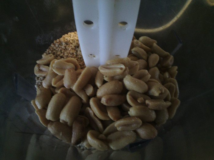 Кунжут и арахис перемолоть.