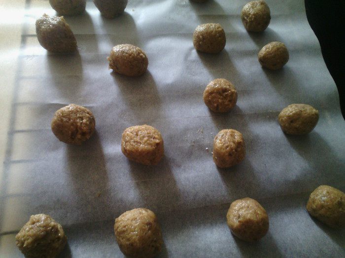 Сделать шарики с грецкий орех выпекать в заранее разогретой духовке 160 ° 12 минут.