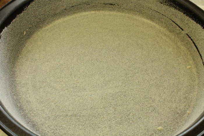 Форму для запекания смазать маргарином и посыпать манкой или сухарями, излишки стряхнуть.