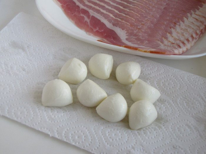 Моцареллу вынуть из рассола и промокнуть бумажными полотенцами.