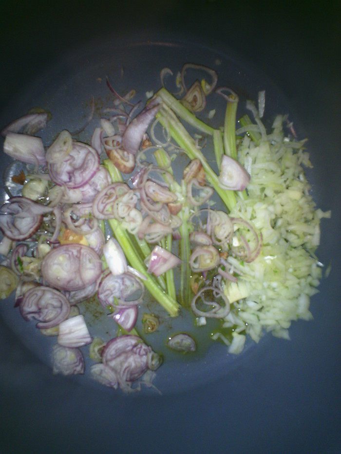 Сельдерей нарезать соломкой, выложить на дно кастрюли, мелко нарезать лук, чеснок 1 зубчик, 1 веточку кориандра.