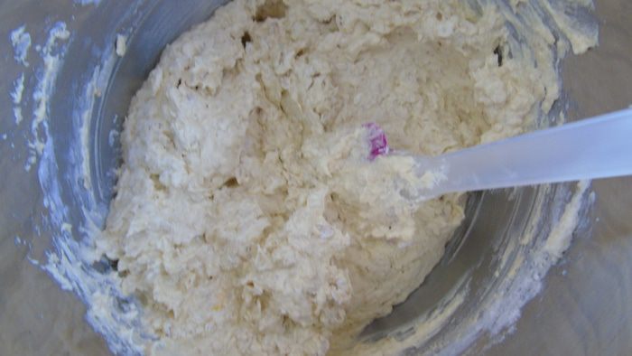 Соедините яичную массу с сухими продуктами и хорошо перемешайте.