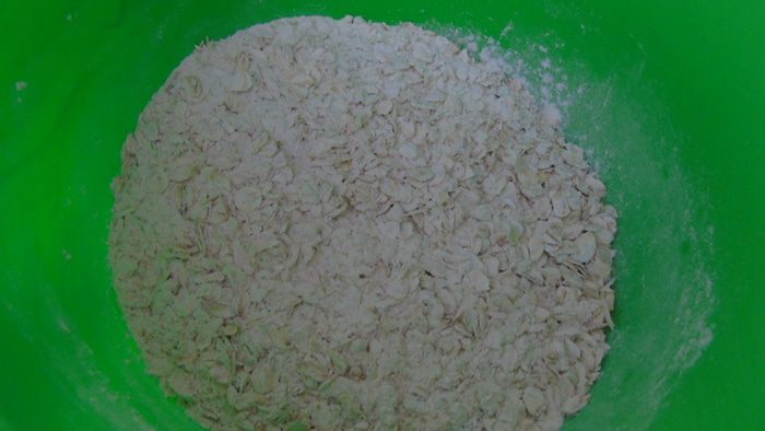 Овсяные хлопья перемешать с мукой и содой.