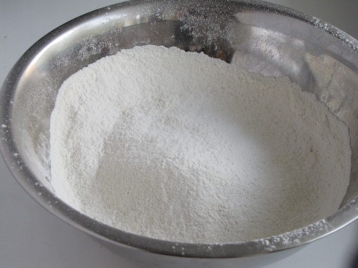 Просеять в миску муку с дрожжами и солью.