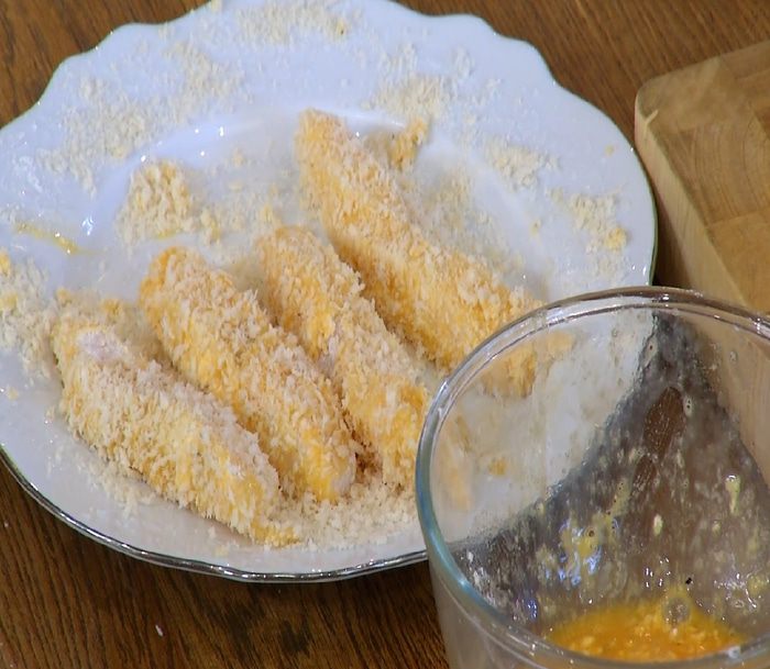 Рыбные пальчики обвалять в муке, окунуть в яйцо, затем со всех сторон обвалять в японских сухарях.