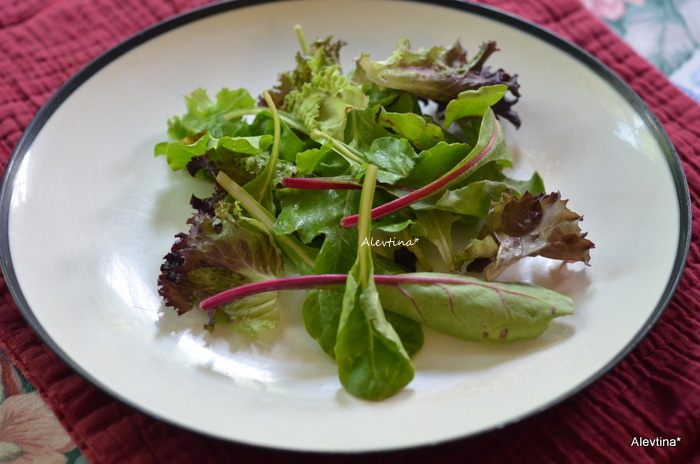 Салатную смесь промыть, разложить по тарелкам.