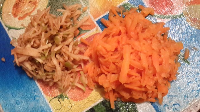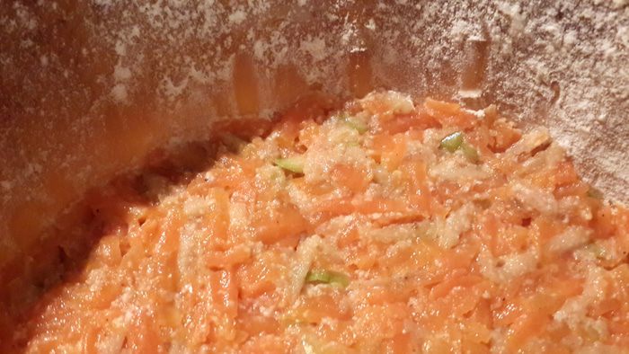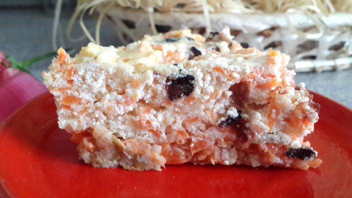 Морковь поставить варить на 20 минут. Порезать мягкий чернослив на мелкие кусочки. Творог умять ступой с цедрой половины лимона и частью подсластителя. Взбить белки до устойчивой пены, добавить желтки, оставшийся подсластитель, вмешать манку. (С дозой подсластителя будьте осторожны, так как сладкие сама морковь, чернослив и яблоко).