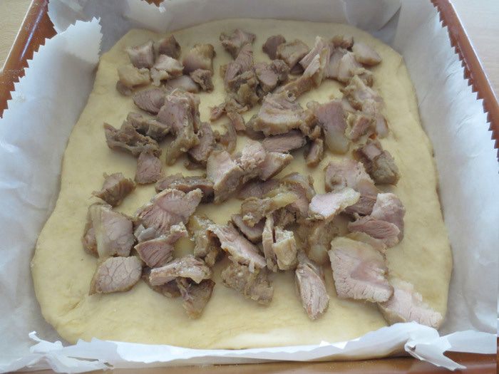 Если хотите, то перед тем как выкладывать мясо, можно положить пластины сыра, затем мясо, зелень и снова пластины сыра.