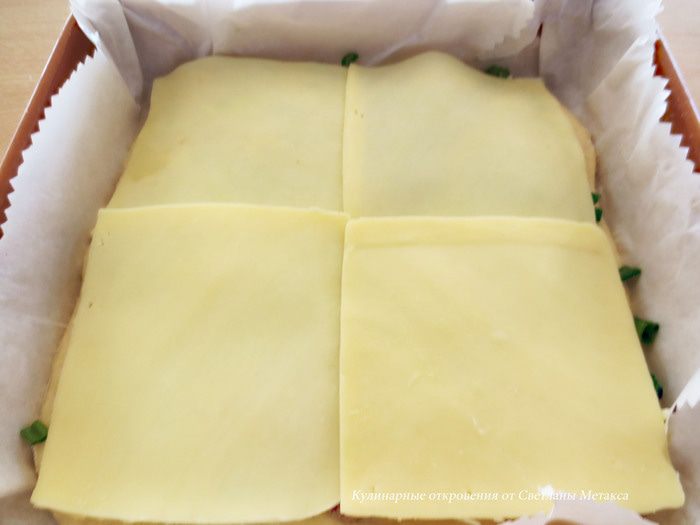 Сверху положить 4 пластины сыра, не тертый сыр, а именно пластины. В интернете не видела использование "покрывала" сыра для тоста, поэтому могу сказать, что идея моя авторская. Сыр плавится не до полного исчезновения, получается очень красивая, вкусная корочка. Попробован однажды, мне понравилось и теперь я это делаю часто. Эта идея особенно хороша для открытых или полуоткрытых пирогов.