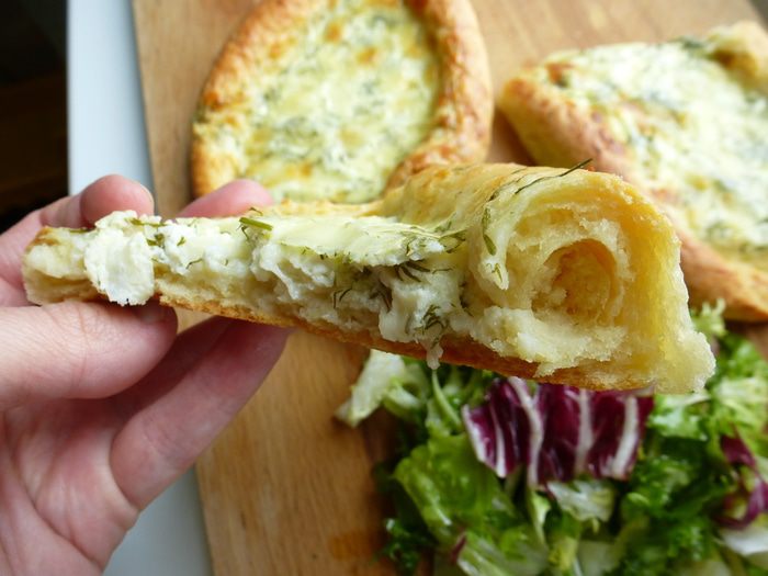 Хочу угостить Вас летними хачапури! Они очень легкие, нежные и немного рассыпчатые, в отличии от дрожжевых. Форма как у хачапури по-аджарски, но без яйца сверху. В начинке сыр сулугуни, немного творога и много свежего укропа! Подавать можно вместо с салатом из зелени. Приятного аппетита, друзья!