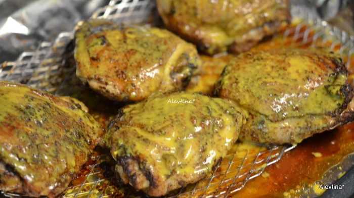 Готовим на прогретом гриле или в духовке 45 мин. Такие части как крылышки или грудки готовяться быстрей, снимаем первыми.