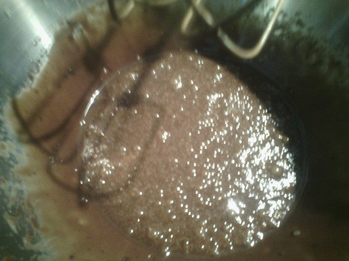Поставить сливки на огонь, не кипятить, снять с огня, добавить шоколад и все перемешать. Взбить миксером до пузырьков, агар-агар залить 25 мл воды и довести до кипения, варить 1 мин, тонкой струйкой влить в шоколадную смесь, взбивая миксером на средней скорости. Оставить немного оставить.