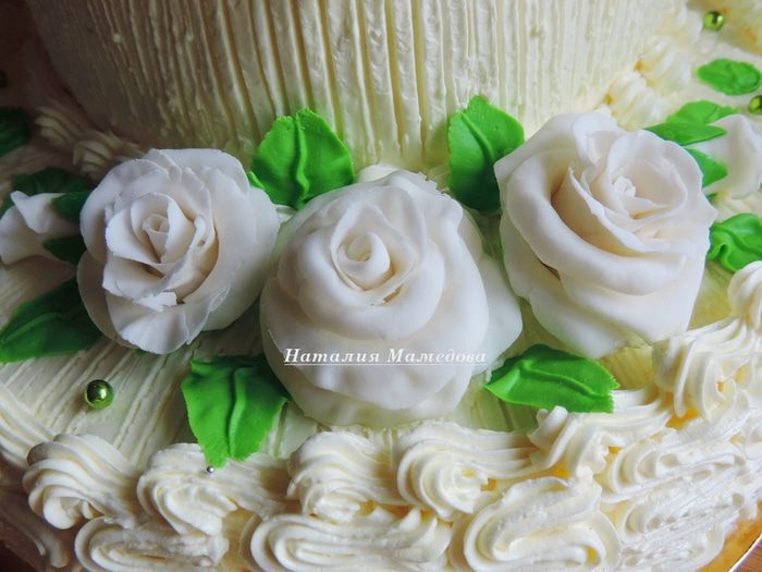 Дорогие друзья! Сегодня я принесла на ваш суд свой первый свадебный торт. Он создавался в жестких временных рамках, на работу у меня было всего 1,5дня. Так что пришлось умерить свой пыл и соразмерить свои желания и возможности