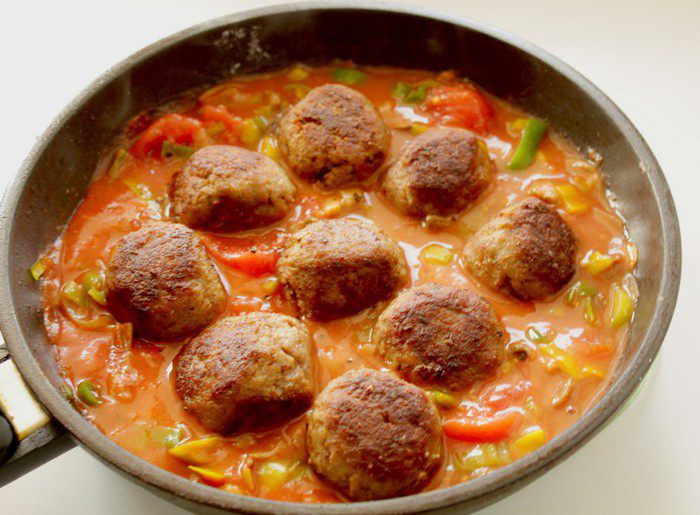 Выложить в соус фрикадельки и потушить на слабом огне 5-10 минут.