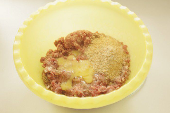 К фаршу добавить сухари, яйцо, приправу (соль, перец черный, итальянские травы - по вкусу), обжаренные лук с чесноком.