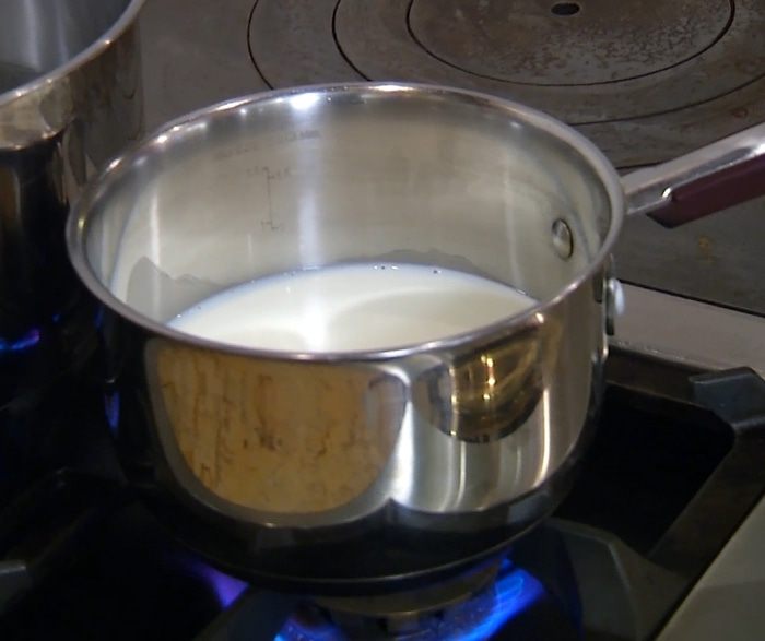 Молоко влить в кастрюлю и прогреть, не доводя до кипения.