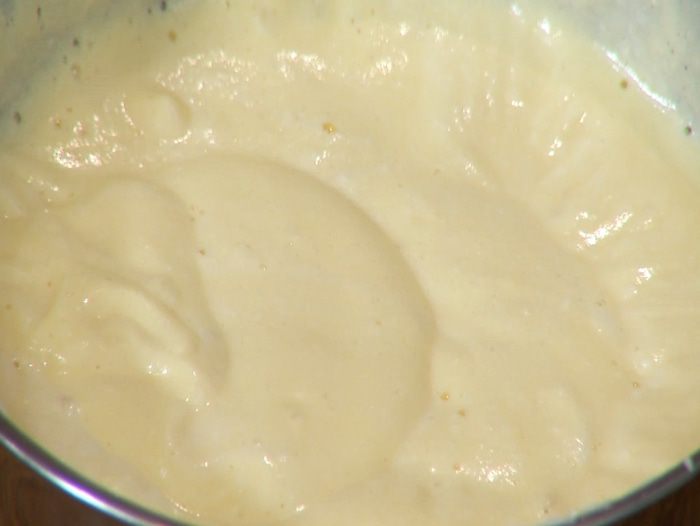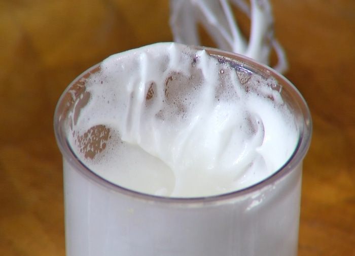 Взбитые белки ввести в еще не успевший остыть крем (это важно!) и все вымешать лопаткой, затем взбить блендером с насадкой-венчиком на самой низкой скорости.