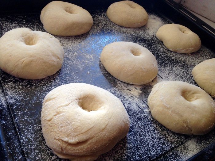 Сформировать булочки, уложить их на противень застеленный пергаментом и оставить на 30 минут в тепле.