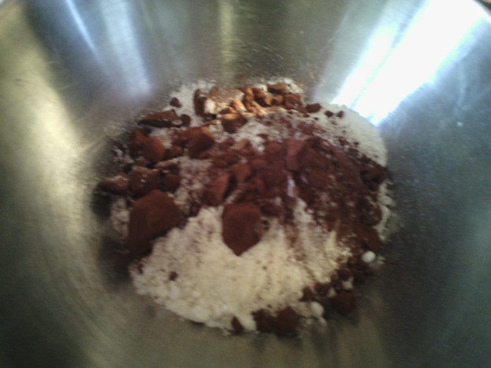 Смолоть арахис мелко, добавить все сухие ингредиенты, перемешать.