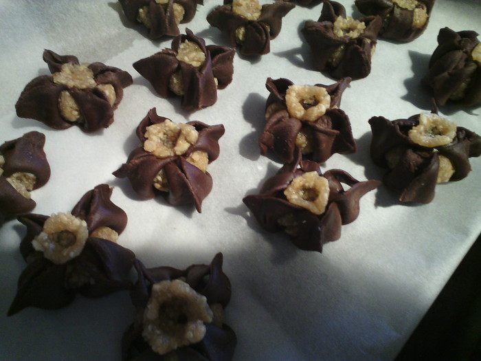 Из начинки сделать плоский кружок и прижать в середине карандашом. Оставляем подсыхать на 6 часов.