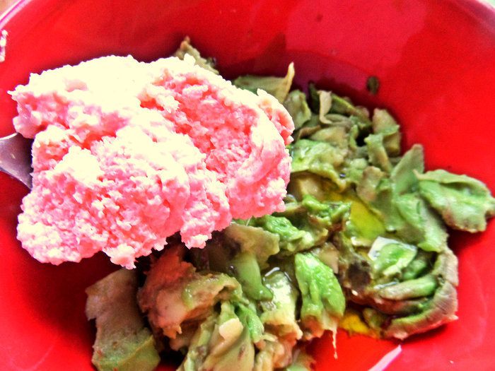 Добавить икру из мойвы с подкопчённым лососем (продаётся в баночках по 165 г или в тюбиках). Имеет сливочный рыбный вкус и кремовую текстуру - хорошо на гренку :)