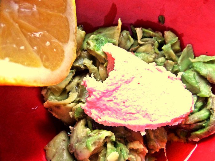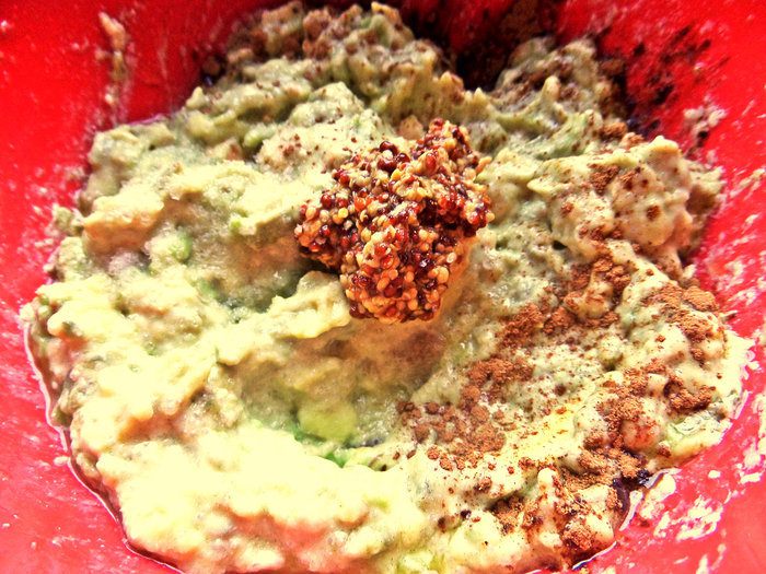 Горчицу... Заправка так хороша,что можно использовать как самостоятельную намазку, хоть ложками ешь!