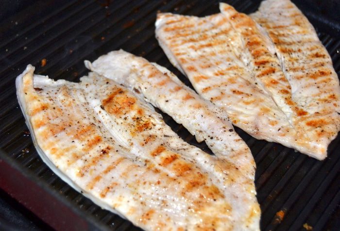 На сковороде гриль обжарить с двух сторон филе. По 3-4 мин с каждой стороны.