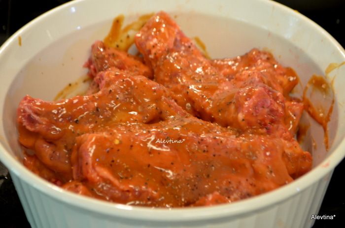 Разогреть духовку или гриль до 160 гр. Cмешать в емкости все для соуса.