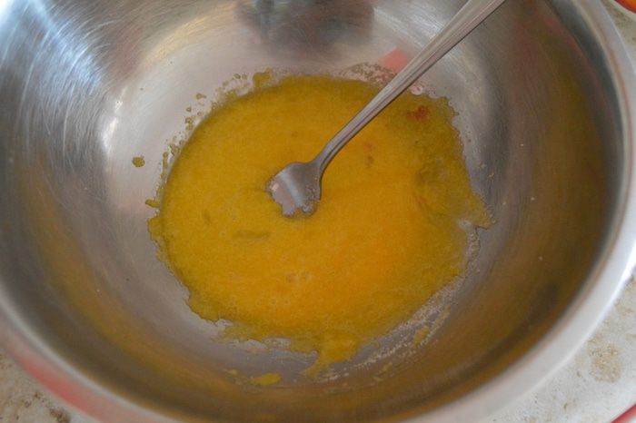Готовим тесто: Яйца разделить на белки и желтки. Желтки растереть с сахаром (Белки уйдут в начинку чуть позже).