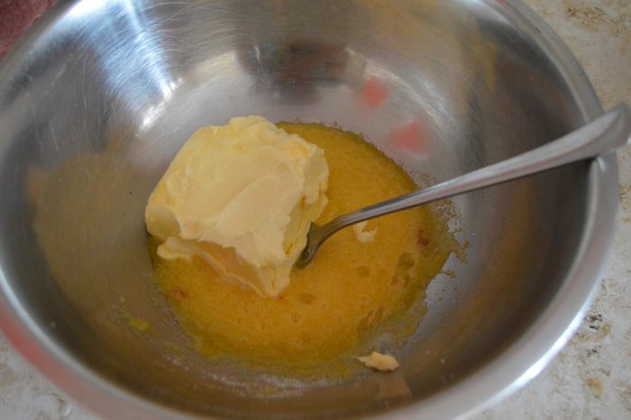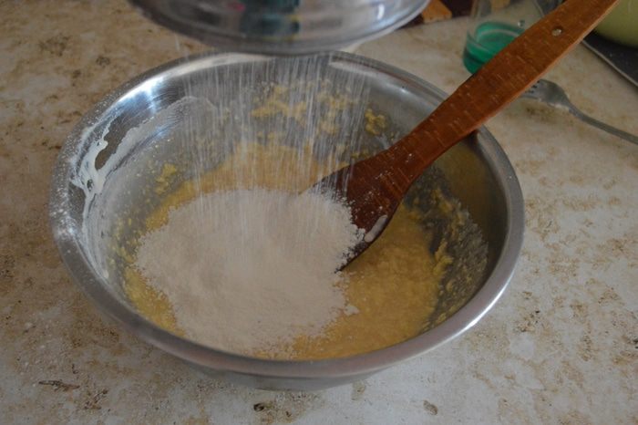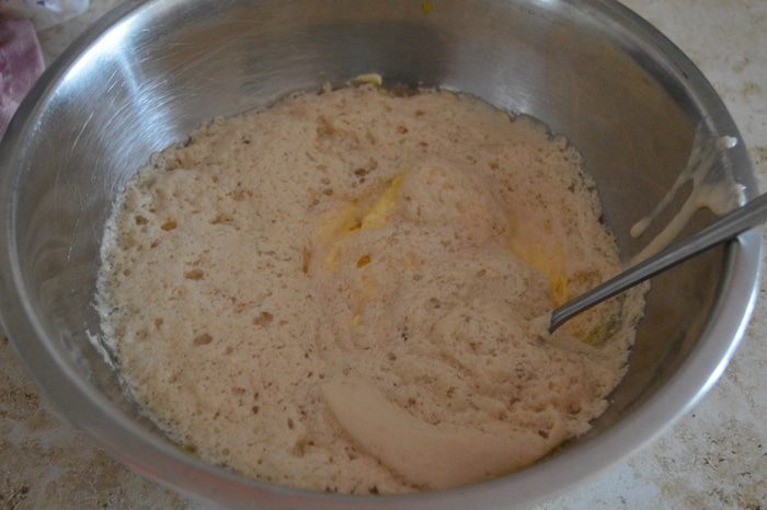 Опару добавляем к яично-масляной массе.